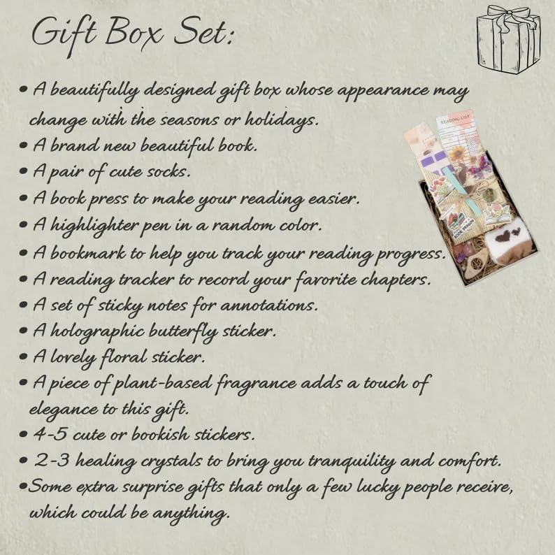 Suitable Occasions: Perfect for any book lover, our Blind Date with a Book gifts are ideal for birthdays, holidays, or as a comforting present. The Gift Box Set comes with a beautifully designed gift box, cute socks, and healing crystals, making it a thoughtful and personal choice