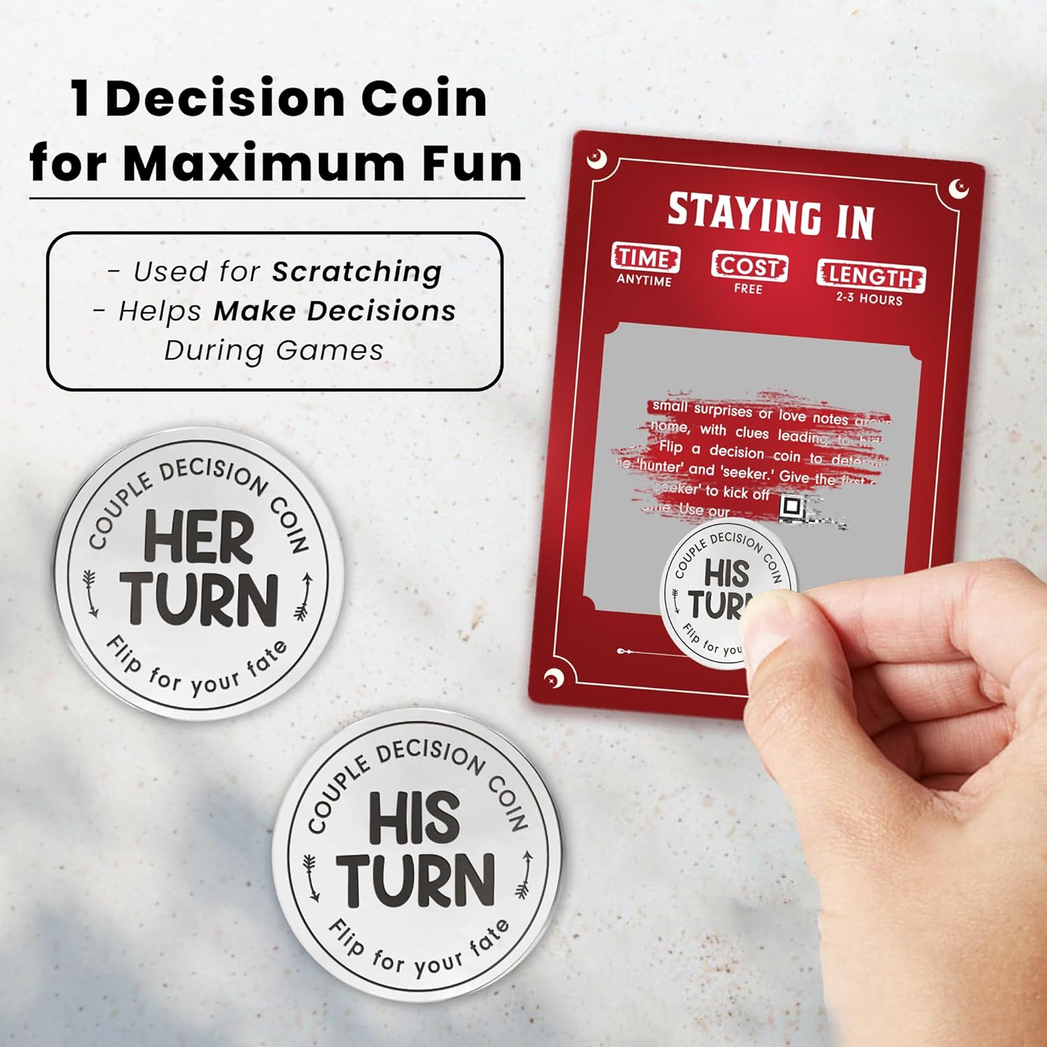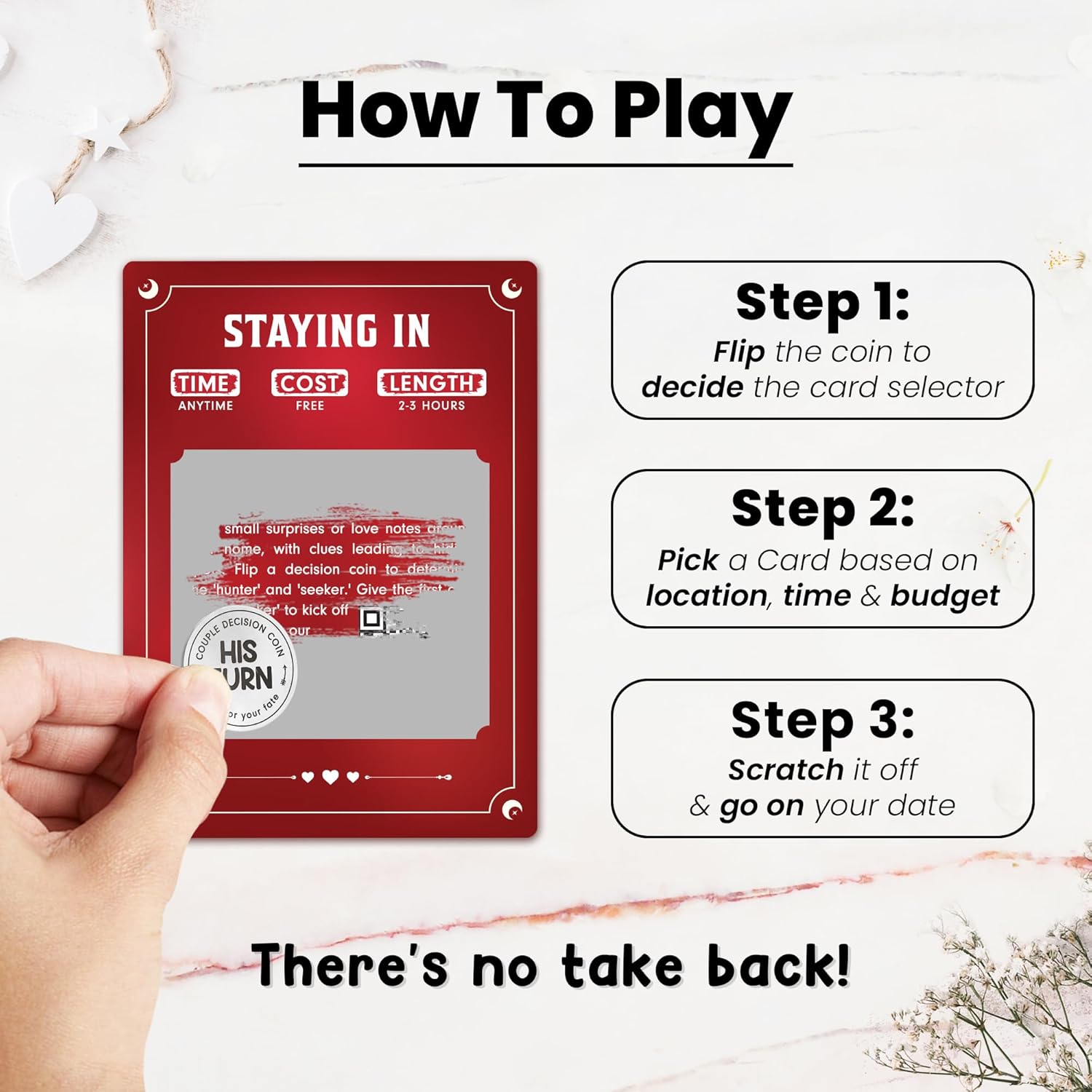 NO COMPLICATED RULES, JUST FUN!: Simple and clear – scratch off the challenge card, and you MUST complete the adventure date. Each card provides useful clues, including the time of day, budget, length of the date, and whether it’s intended for indoor or outdoor activities. Cute games for couples, date night games, couple games for date night, dating games for new couples, date night card games for couples