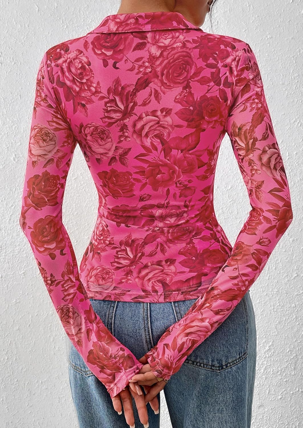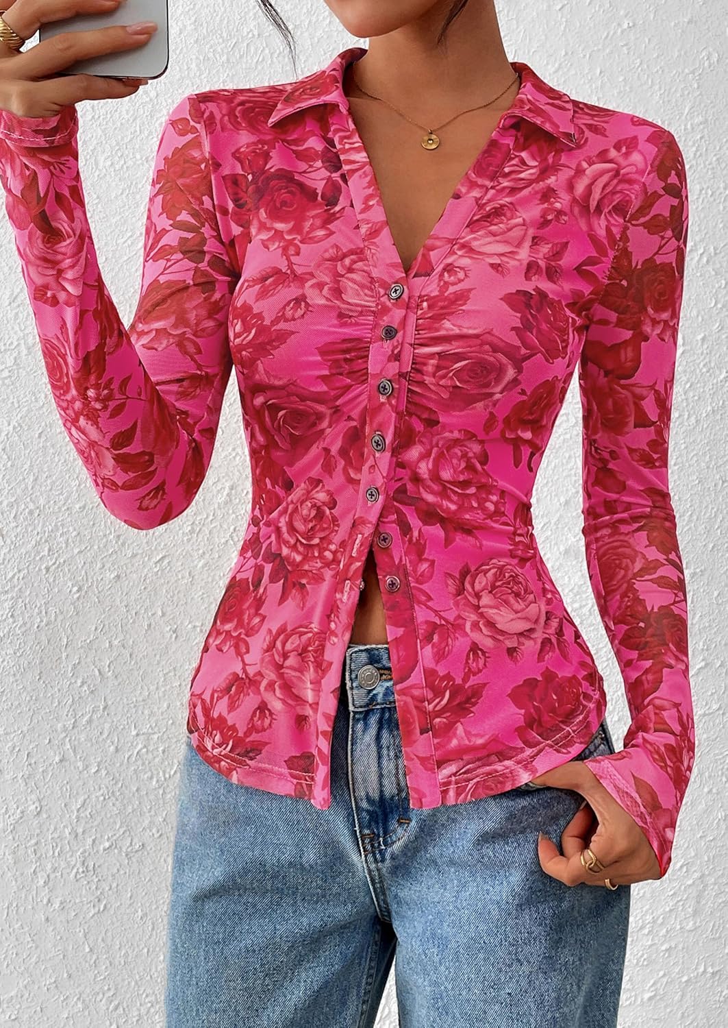 PRETTYGARDEN Women Button Down Floral Shirts 2025 Fall Trendy Long Sleeve V Neck Ruched Fitted Mesh Blouse Tops Date Outfits