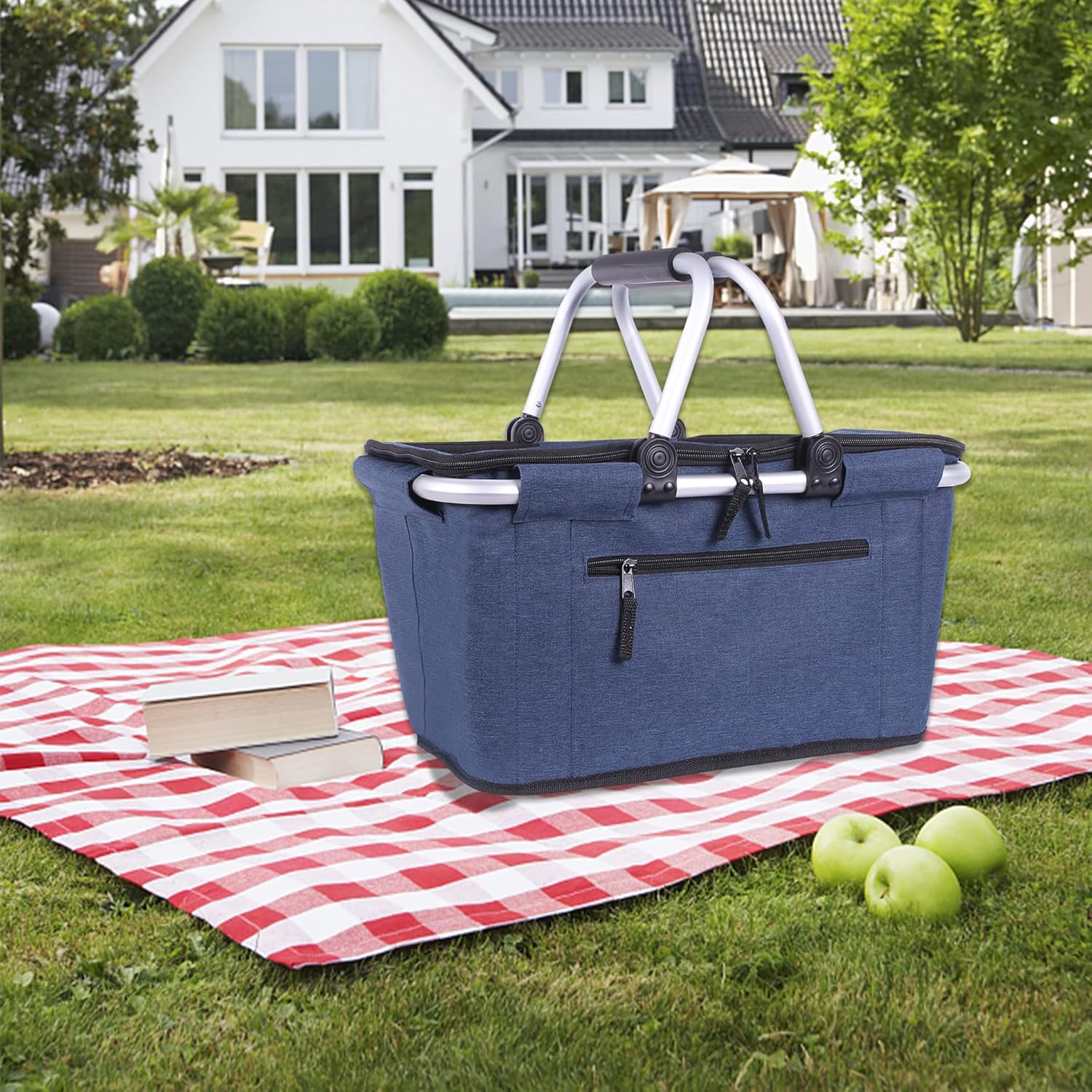 Picnic Basket with Effortless Storage – Durable aluminum frame won’t warp like wicker. Folds to just 2″ for easy storage in your car, kitchen, or closet. To collapse, simply flip the bottom edge inward and press flat for space-saving storage.