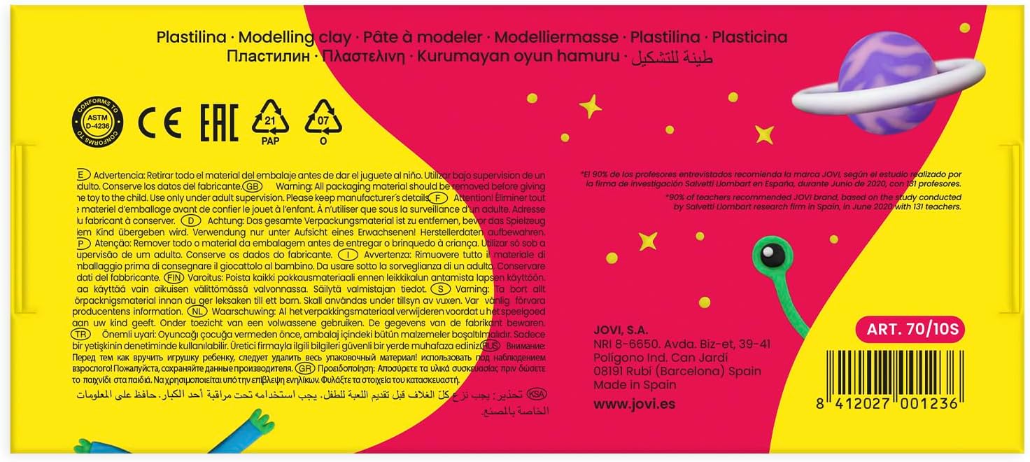 Jovi – Non Drying Modeling Clay, 1.1 lb of Endlessly Reusable Plasticine, Set of 10 Bars, Each 1.75oz, Non-Toxic and Gluten-Free, for Arts and Crafts Projects