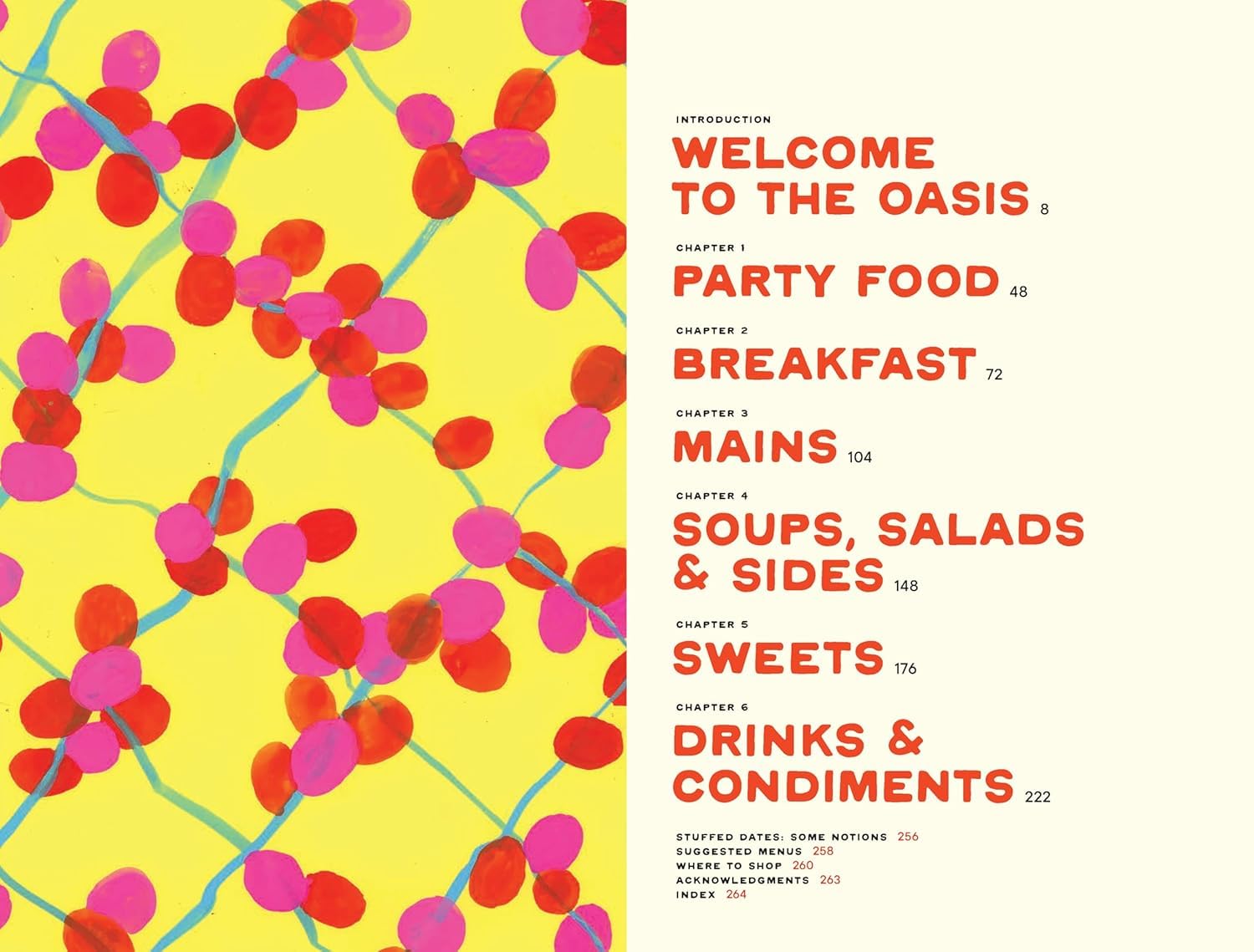 Divided into six chapters, Hot Date! features recipes that are big on flavor and low on fuss, ranging from Party Food (stuffed dates of all kinds!) to Breakfast; Mains; Soups, Salads & Sides; Sweets; and Drinks & Condiments (the Date Chili Crisp is a life changer). Informative sidebars that read like a scrapbook, how-to content, timelines, and historical snippets feature Rawaan’s watercolor illustrations, patterns, and elegant hand-lettering, exploring such topics as: Date-growing cultures, history, and visits to date farms in Palm Springs, the United Arab Emirates, and Egypt The evolution of the classic Palm Springs date shake How date palms are pollinated (entirely by hand, to this day—millions of them!) How to stuff dates Dates at different stages of ripeness Shopping and sourcing suggestions Extensive suggestions for more reading to enter the world of the date