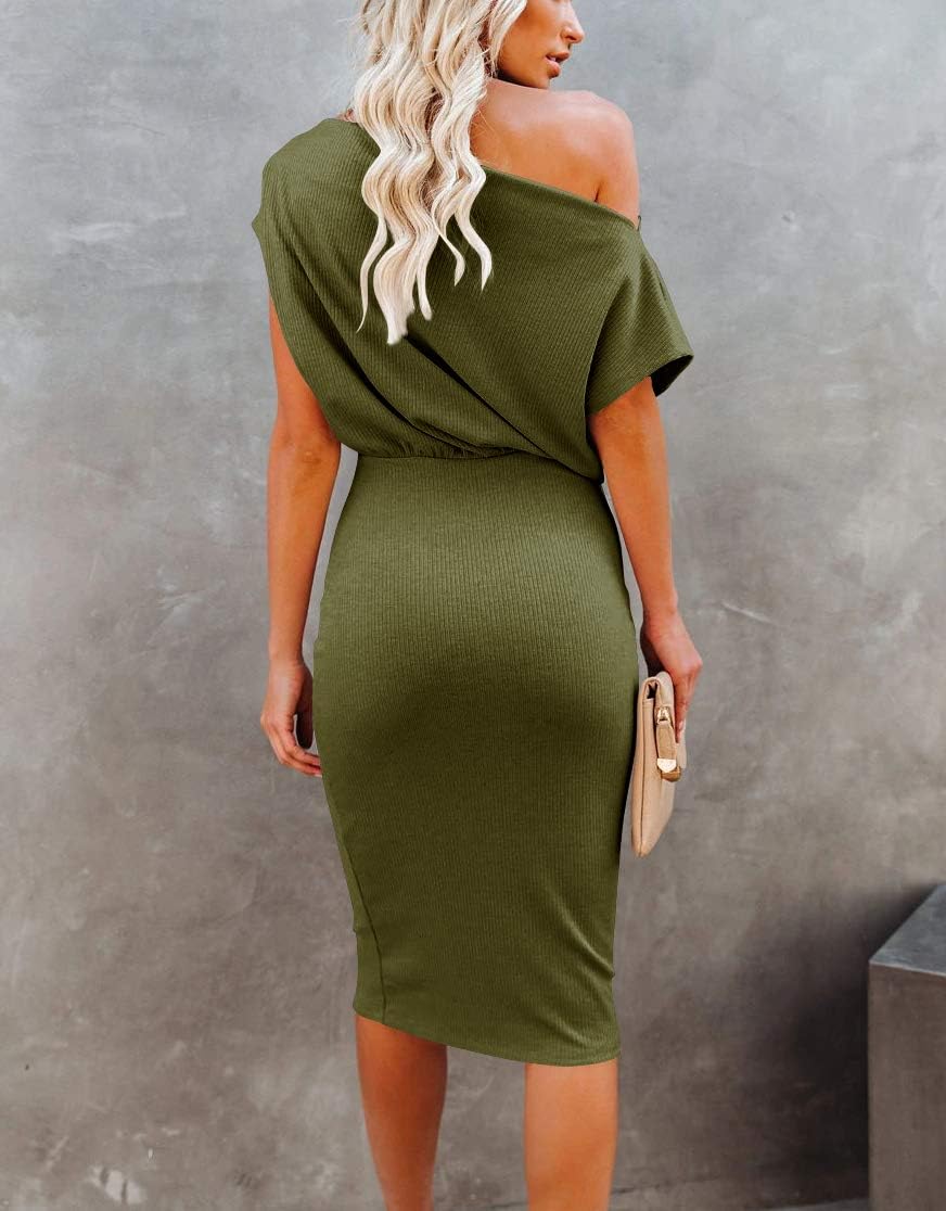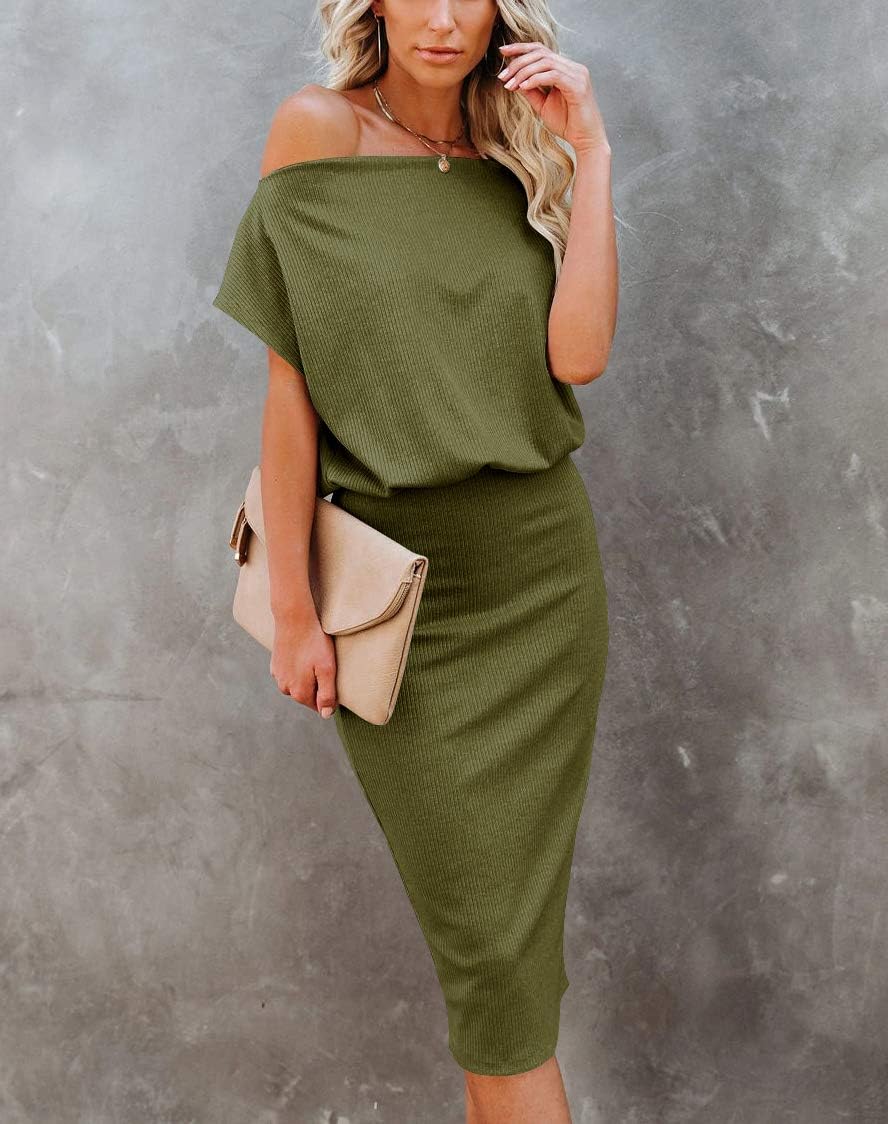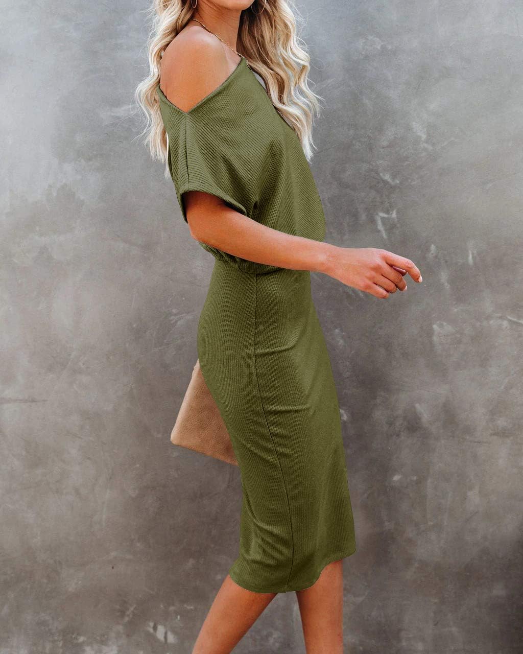 Bodycon Off The Shoulder Midi Dress Short Sleeve Party Cocktail Pencil Dress