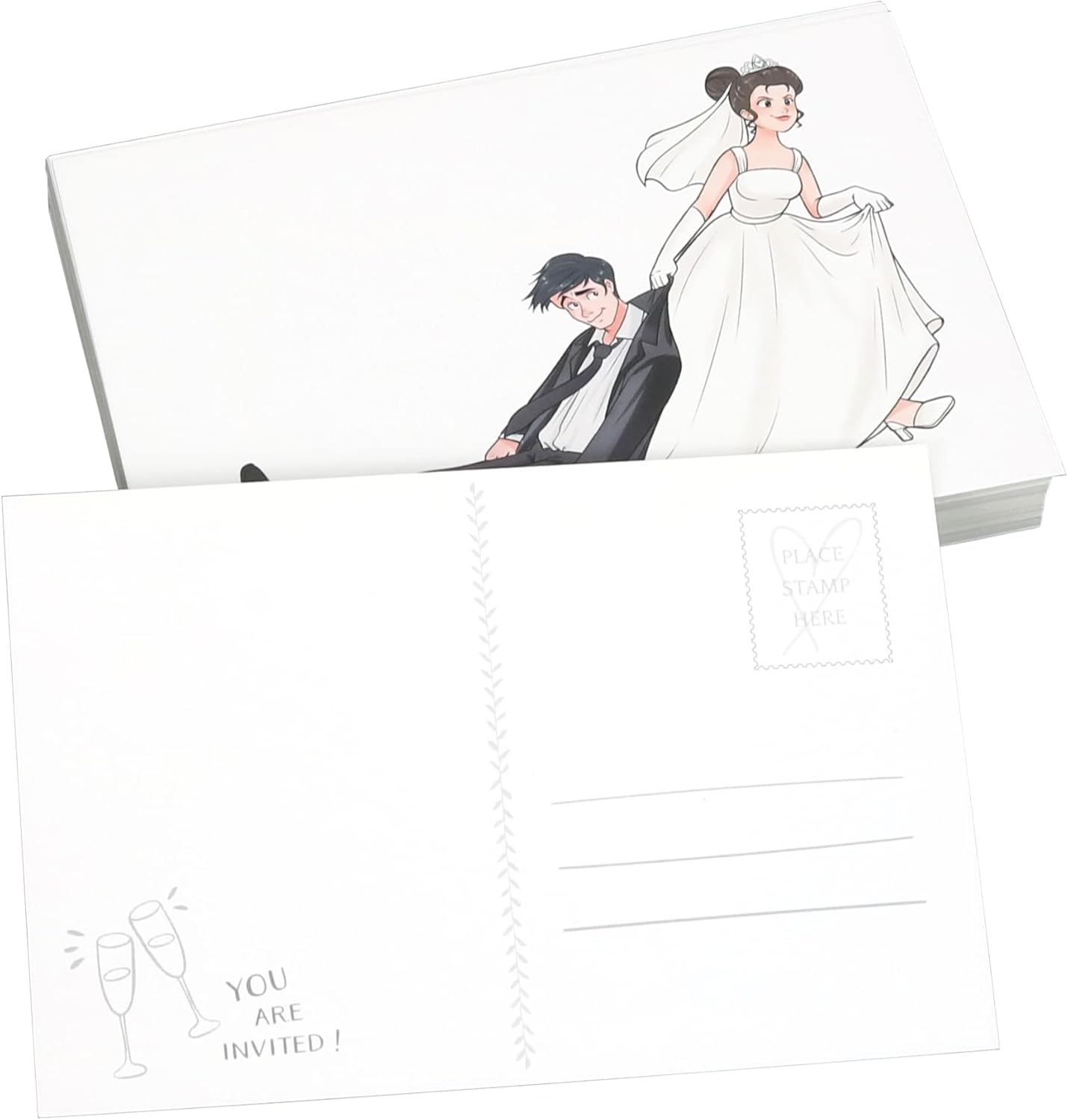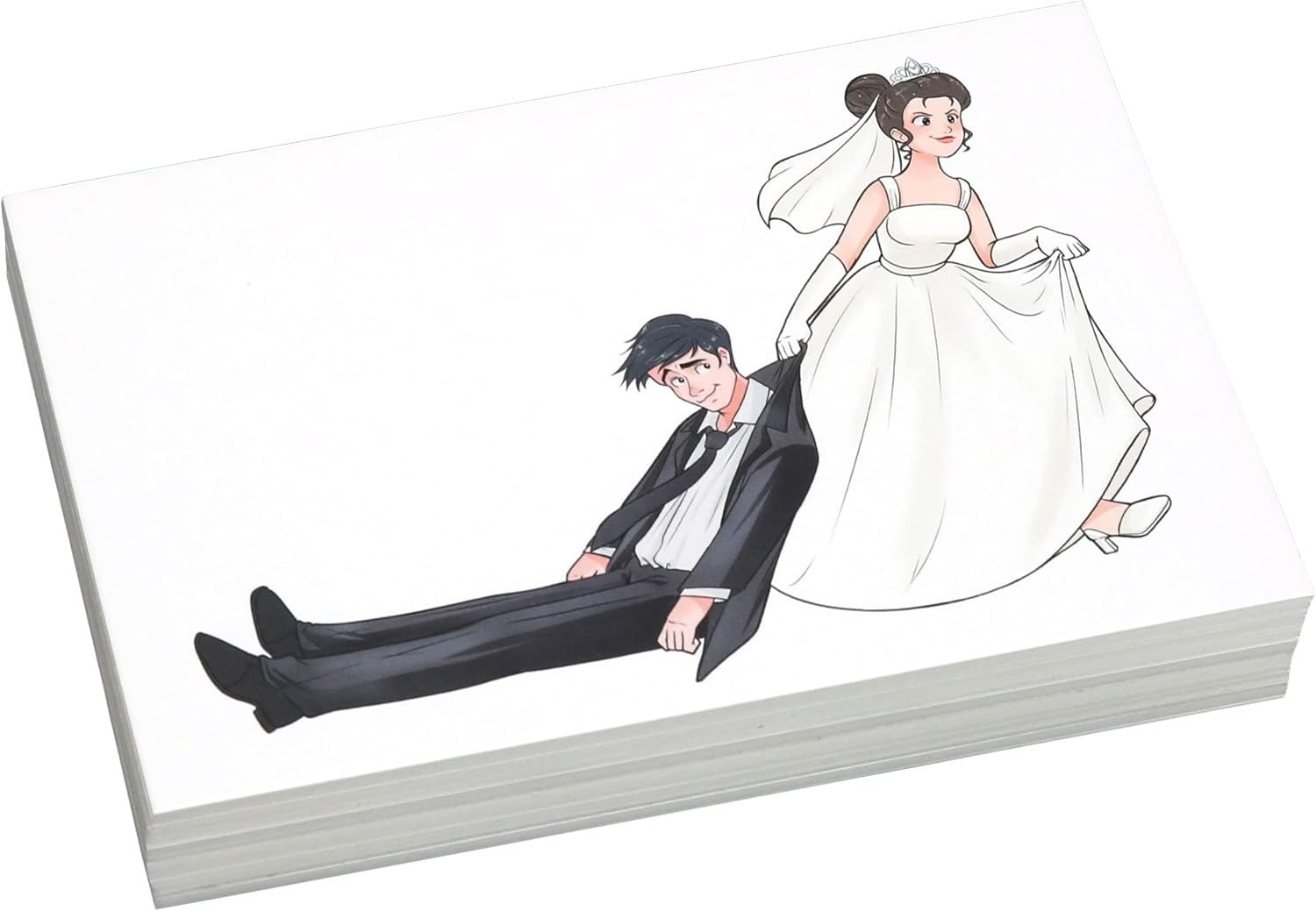 These beautiful postcards feature an amusing cartoon of a semi-reluctant groom being dragged by his determined bride