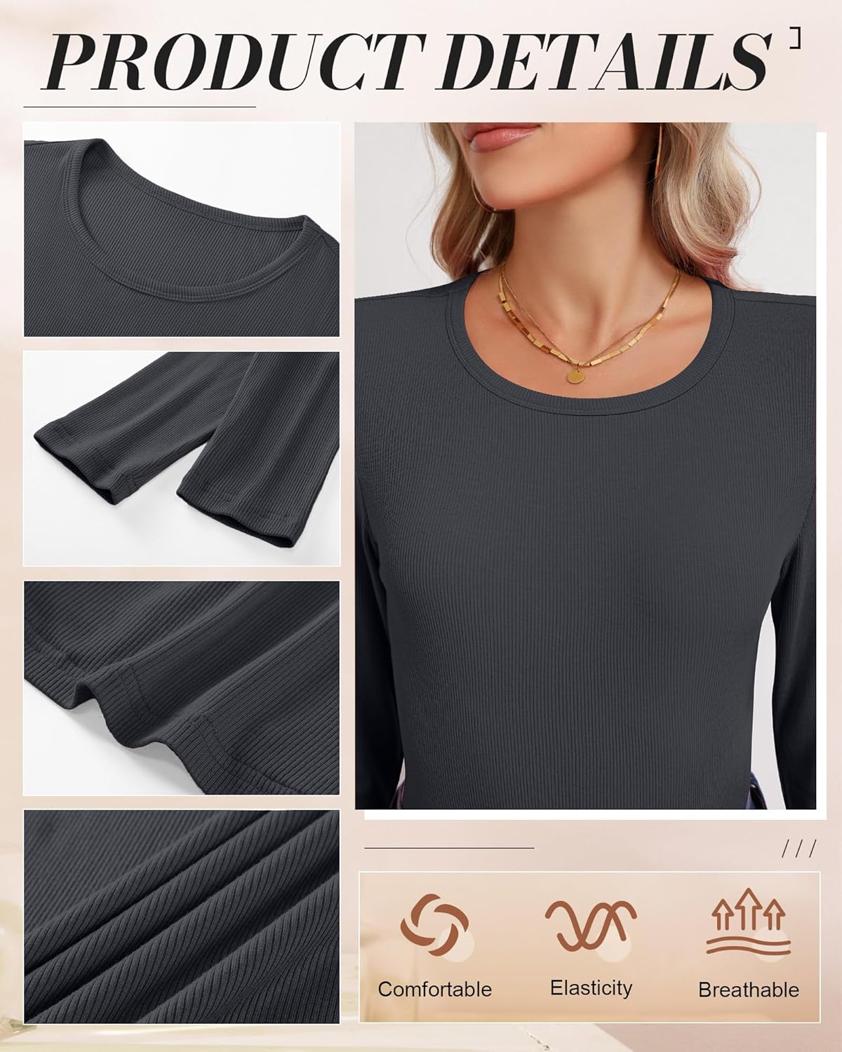 The video showcases the product in use.The video guides you through product setup.The video compares multiple products.The video shows the product being unpacked. Women’s Ribbed Long Sleeve Tops Merchant Video