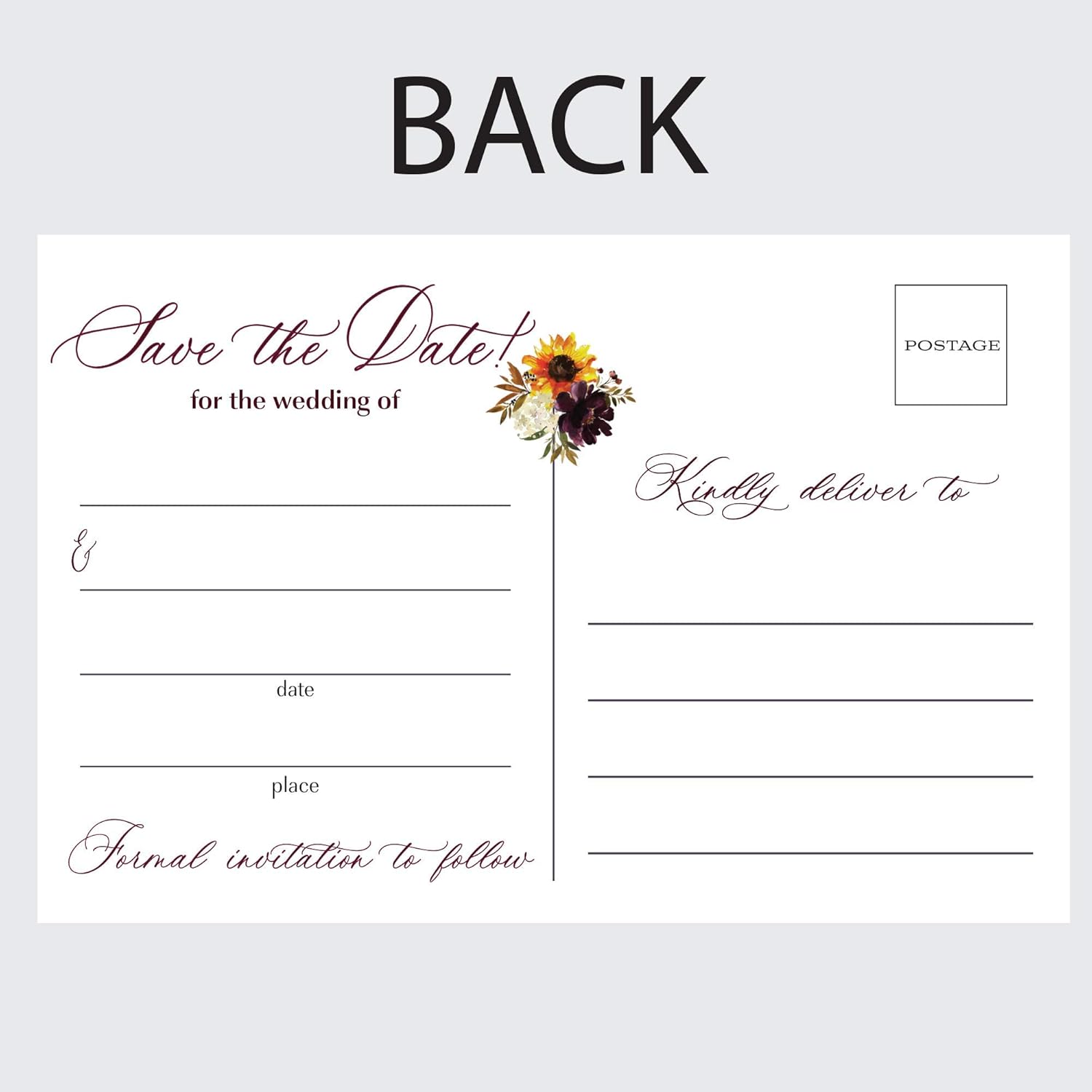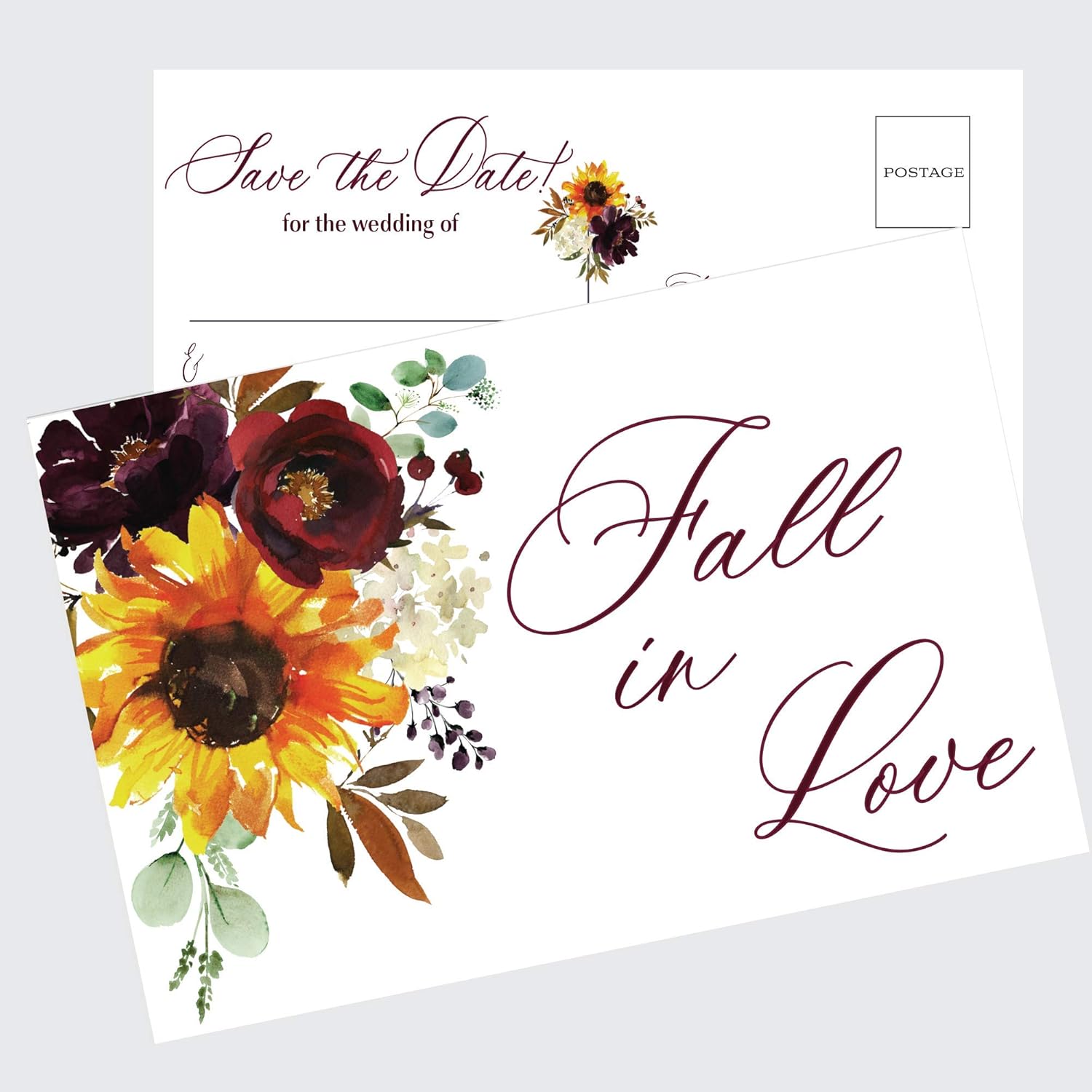Set Of 50 Save The Date Postcards: Includes 50 postcards with fall-themed designs