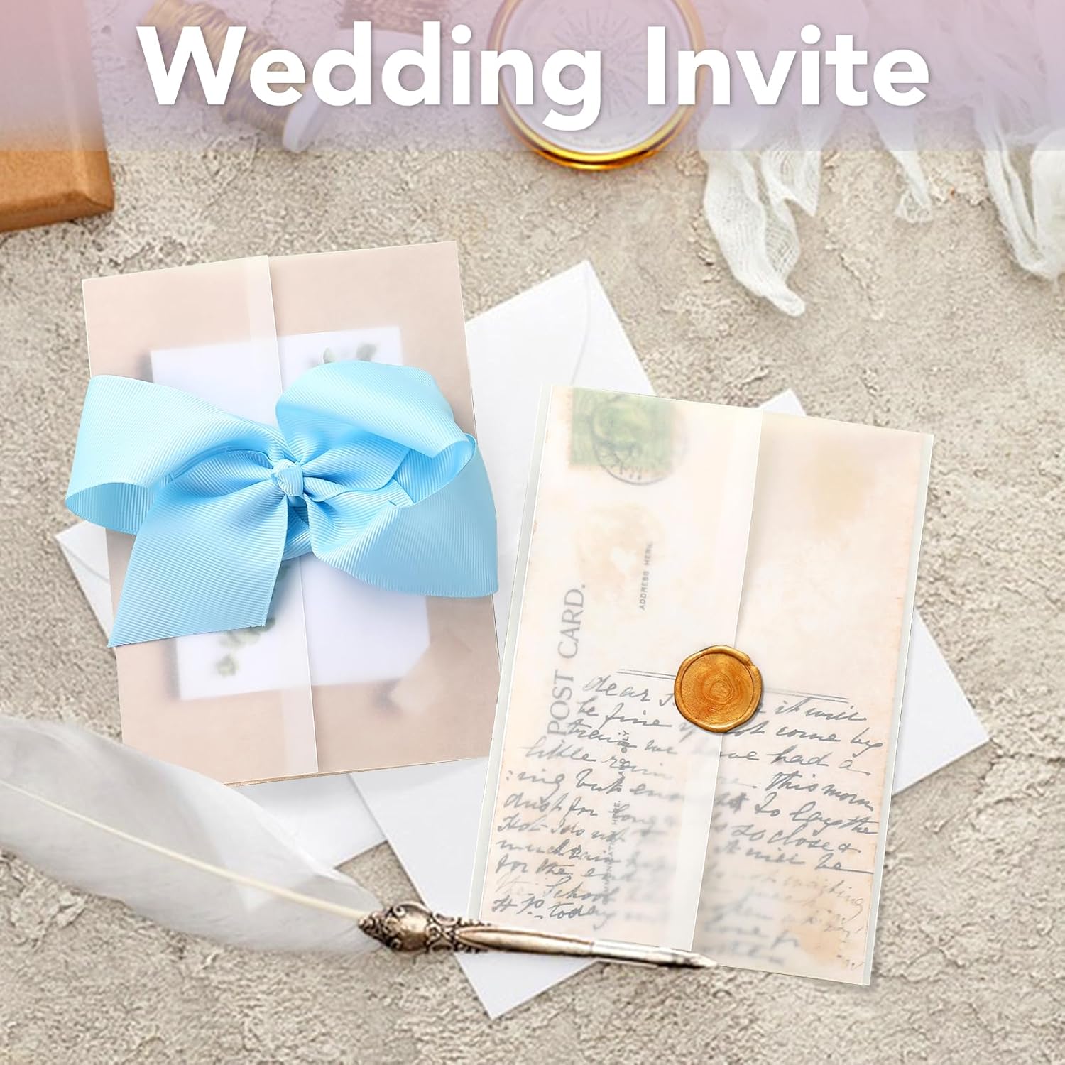 【Pre-folded Design】 Vellum paper jackets features double-sided folding design, you can directly place invitations envelope in your vellum jacket,Tie a ribbon or decorate it with wax stamps or stickers, and the invitations will become more attractive