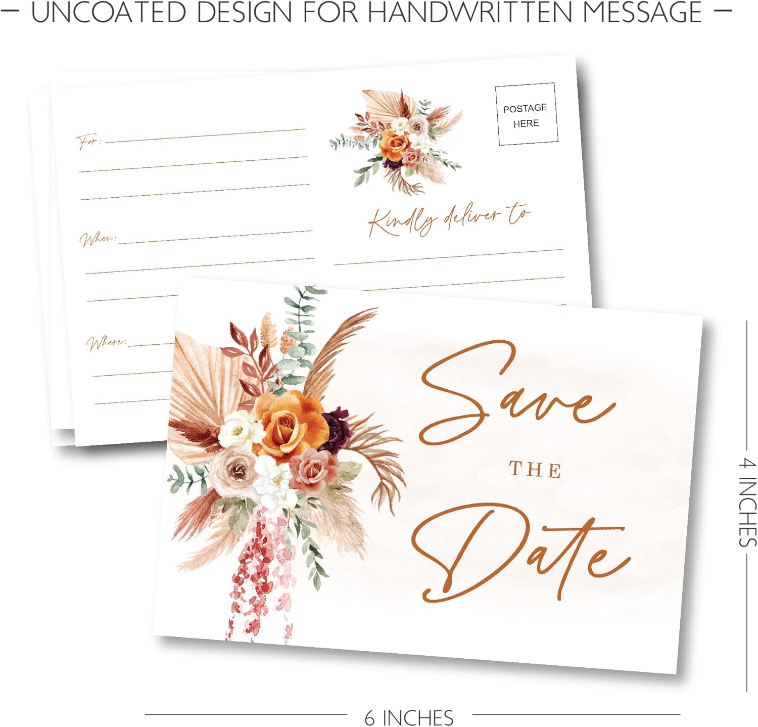 Your Main Event Prints Boho Orange and Terracotta Wedding Save The Date Card Invitations – 50 Count – Postcard Ready to Mail, No Envelopes Needed