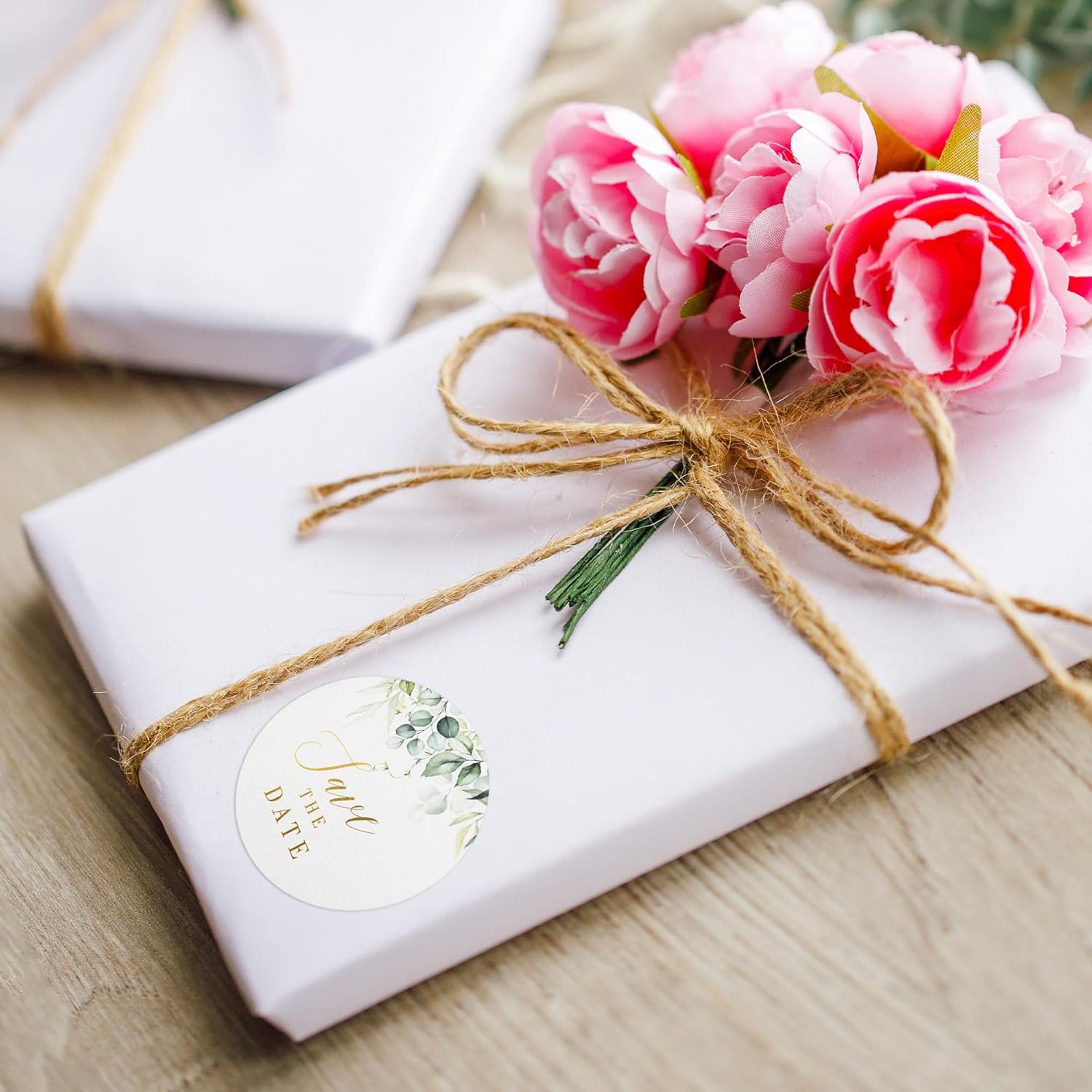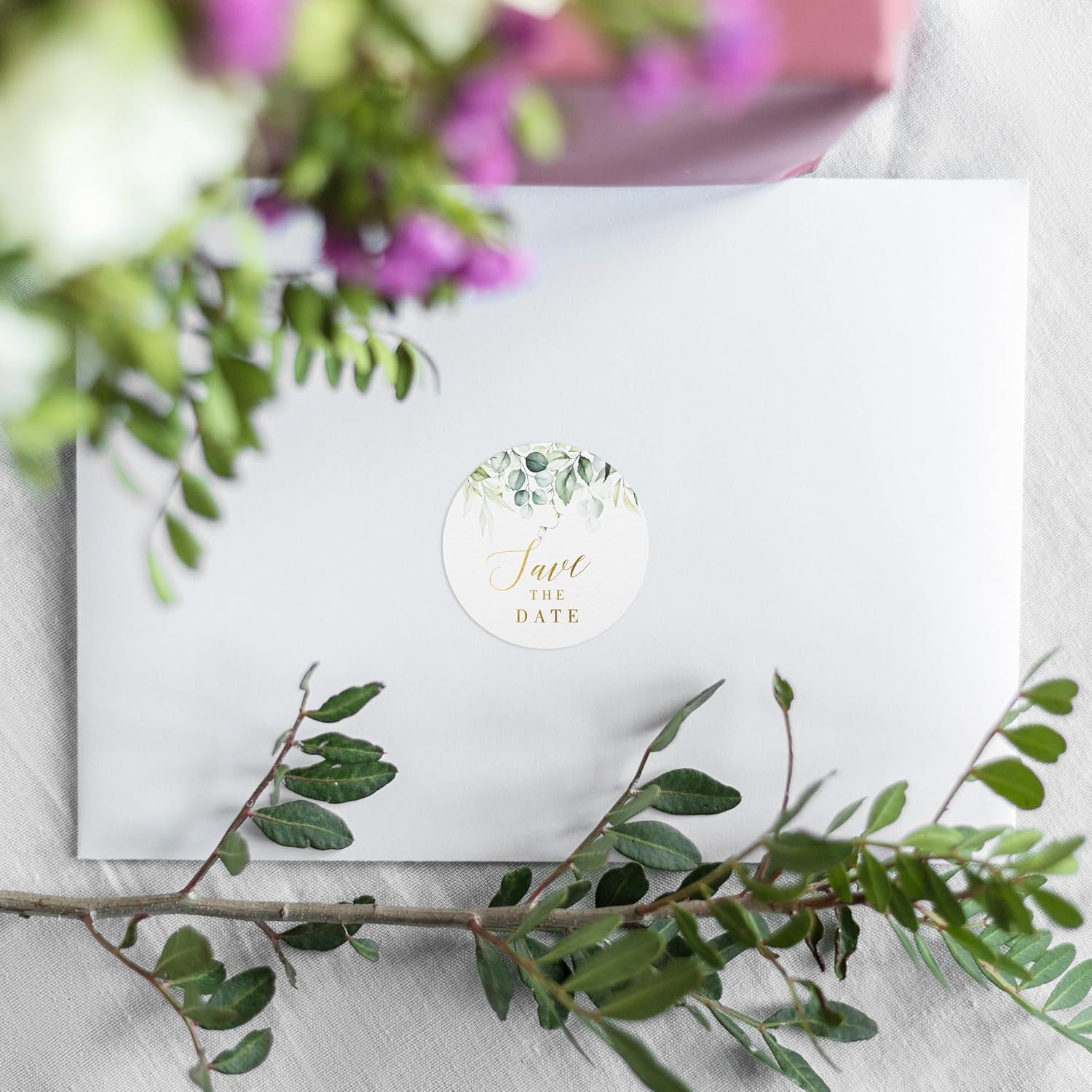 Chic & Elegant Design – Featuring a lush eucalyptus greenery motif with stunning gold foil “Save the Date” script, these stickers add a romantic, modern touch to save the dates for weddings and save the date cards, while also working beautifully as wedding envelope stickers.