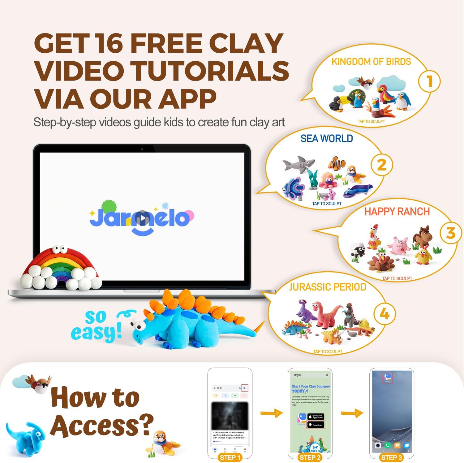 Free Step-by-Step Video Tutorials via QR Code: Scan the QR code on the box to access our brand’s creative clay tutorials! Fun and educational videos help kids progress from simple shapes to detailed masterpieces—perfect for creative learning at home.