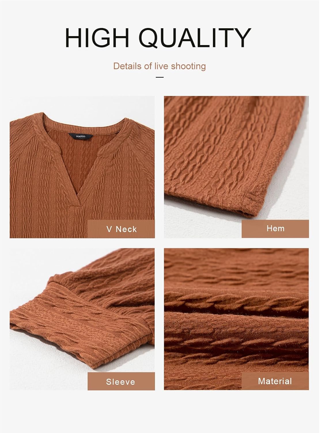 Dokotoo Fall Dresses for Women 2025 Long Sleeve V Neck Textured Mini Dress
