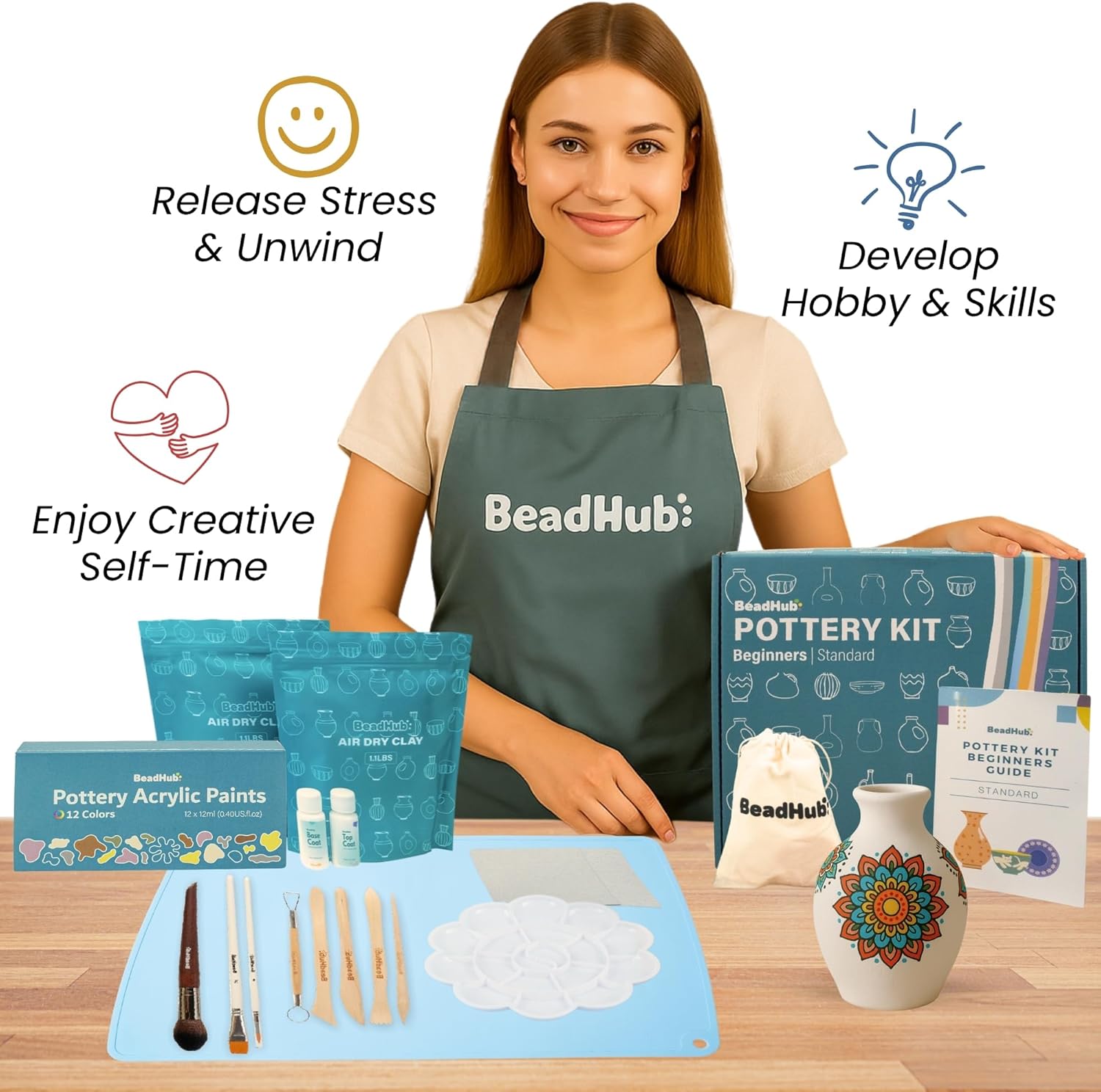 BEADHUB BEST POTTERY STARTER KIT UNBOXING – Our air dry clay pottery kit is not just a pottery kit with tools and paint that are common and basic. We added more items that differentiates this pottery kit for adults vs. other kits normally have only clay and paint, truly an ideal DIY pottery kit for home use. Making this the most affordable pottery starter kits online. It contains the best air dry clay for pottery kits so you’re wondering where to buy pottery starter kits, you’re definitely in the right brand. Artistic gift ideas crafted for ceramic enthusiasts of all levels.