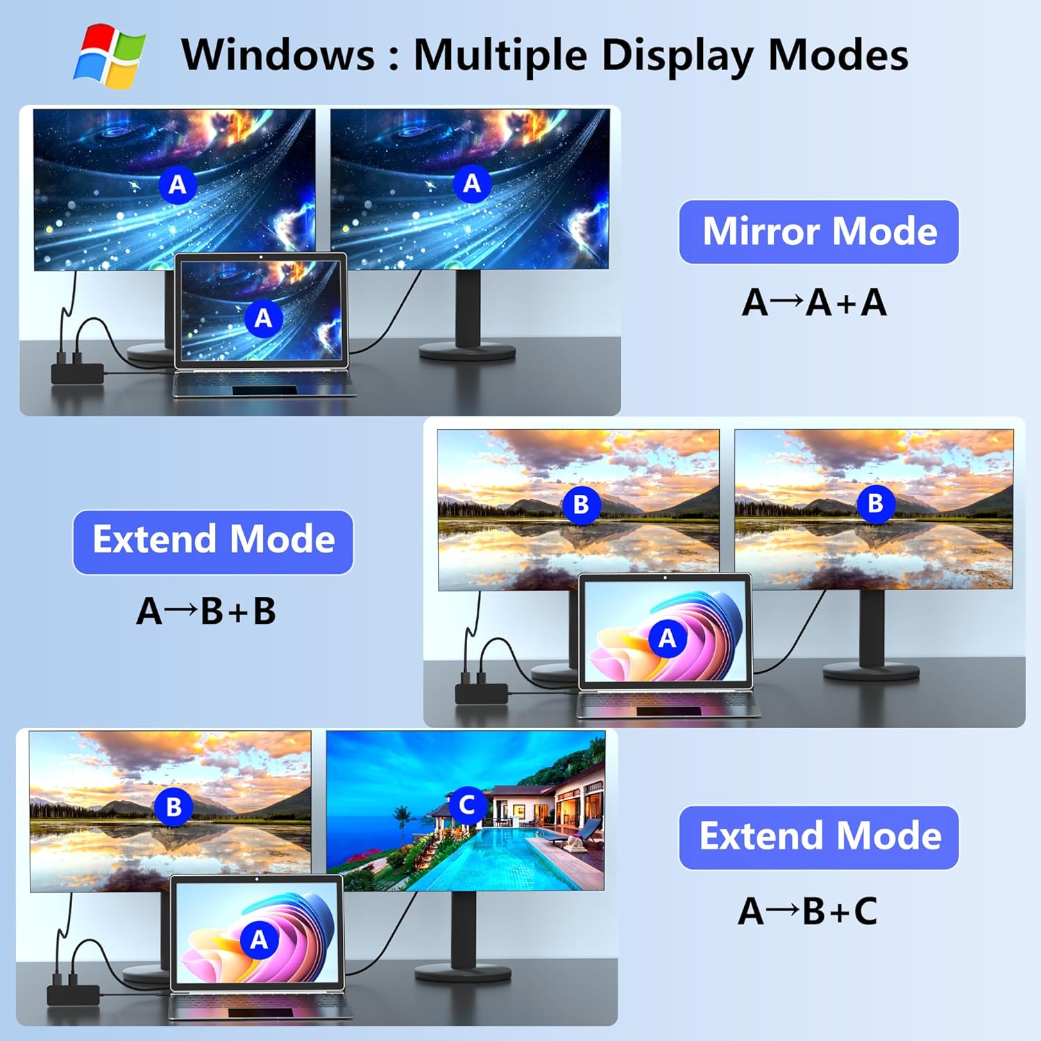 【4K60Hz Docking Station with 2 HDMI Ports】: The USB C Dual HDMI adapter with 2 HDMI ports, allow your USB C laptops to extend 2 different monitors, no need any drivers or software, just plug and play. Support both SST and MST mode. 2 HDMI ports can be used simultaneously, resolution up to 4K@60hz(DP1.4 Laptop) . Notice: MacOS ONLY support SST(Mirror Mode: display the SAME image) due to the MacOS limitation. Windows support MST(Extend Mode) and SST(Mirror Mode).