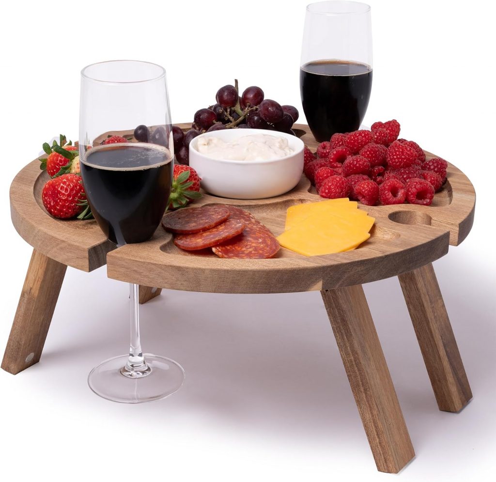 Upgrade your outdoor experiences with this Acacia Wood Foldable Wine Table a must-have for picnics,