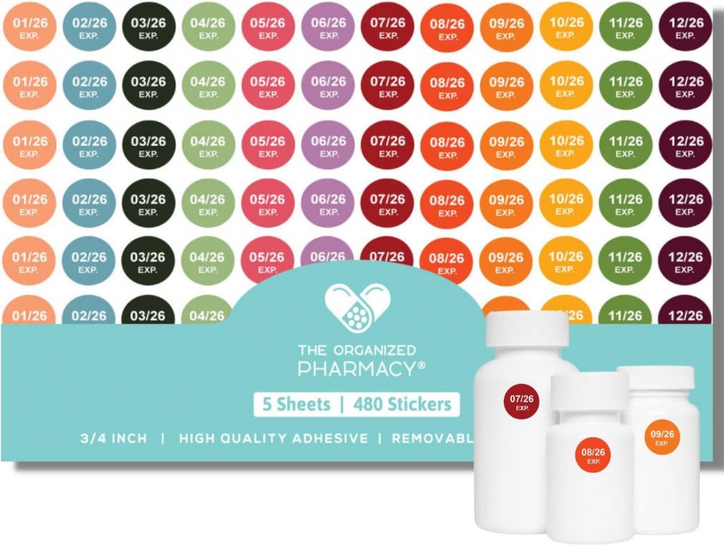 The Organized Pharmacy Expiration Dates Stickers System – See. Pull. Done. 3 Year Supply – 480 Color Coded Pharmacy Inventory, Chemistry & Food Expiration Date Management Labels Stickers (2026)